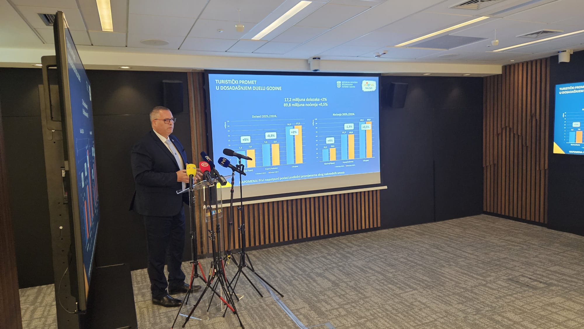 „Hrvatski turizam bilježi rekordne rezultate i kada govorimo o turističkom prometu i kada govorimo o potrošnji. Zadovoljni smo ostvarenim, iako prostora za napredak još imamo, a posebno u kontekstu daljnje stabilizacije cijena, koja ostaje ključan faktor i u ostatku godine, ali i u pripremama za sljedeću godinu. Turizmom upravljamo prema načelima održivosti kao što je i definirano strateškim i zakonodavnim okvirom. Paketom zakona u trokutu porezne, prostorne i turističke politike, koji su na snagu stupili ove godine stvaramo održivu strukturu smještajnih kapaciteta“, izjavio je Tonči Glavina, ministar turizma i sporta.