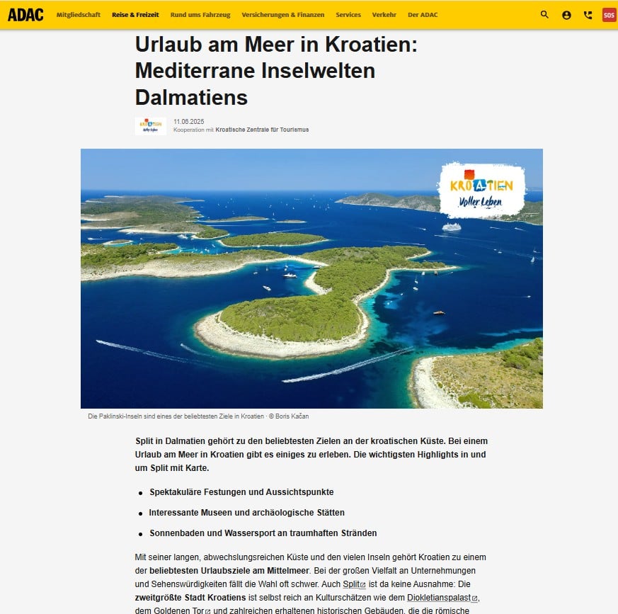 Dodajmo kako su u okviru ovogodišnje suradnje već realizirane i određene promotivne aktivnosti u ADAC i Galeria putničkim agencijama. Promotivna kampanja se provodi i kroz sve ADAC-ove online kanale, među kojima su brojne web stranice i aplikacije, poput Reise und Freizeit, Maps, Drive App, Trips App i Skipper Portal, gdje je Hrvatska predstavljena kroz tematske članke, posebne landing stranice i prateće teasere.