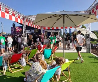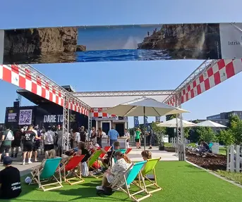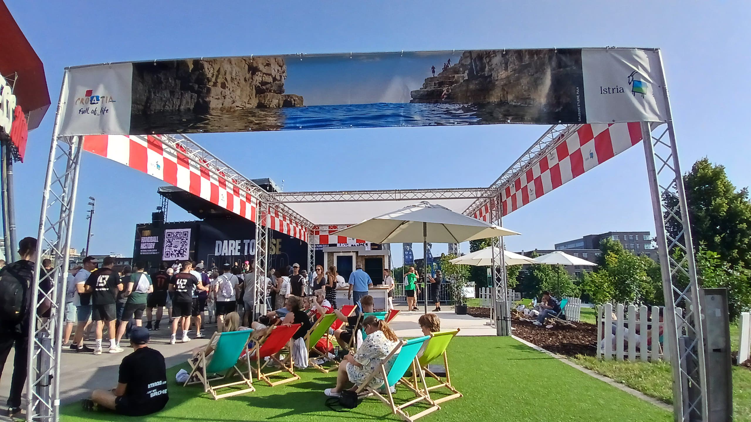 Posjetitelji i sudionici ovog sportskog spektakla mogu se opustiti u brendiranom prostoru s hrvatskim motivima i karakterističnim crveno-bijelim kockicama, a u okviru istoga dodjeljuju se i brendirane lepeze, ruksaci, boce za vodu i ručnici za plažu. Dodatna vidljivost Hrvatske kao atraktivne turističke destinacije postignuta je i kroz photobooth zonu predviđenu za fotografiranje s 10 pozadinskih fotografija istarskih krajolika. Vizure Hrvatske s posebnim naglaskom na Istru krase glavne ekrane na pozornici ispred Arene u fan zoni, unutar dvorane te na podnim naljepnicama.