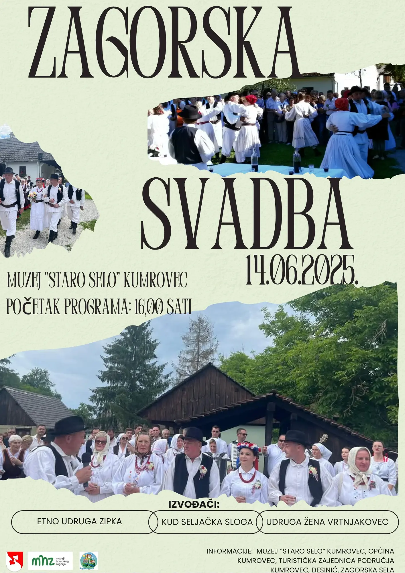 42. izdanje manifestacije Zagorska svadba održat će se 14. lipnja 2025. s početkom u 16 sati na prostoru Muzej "Staro selo" Kumrovec