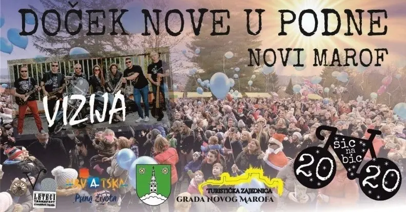Kod Kulturnog centra "Ivan Rabuzin" svirat će grupa Vizija uz bogatu ugostiteljsku ponudu, tombolu i Motomrazove, a baloni sa novogodišnjim željama na veselje svih prisutnih, poletjet će put neba točno u podne. Prijavom na drugi po redu Zimski ŠIC NA BIC, na Doček Nove u podne neki će doći biciklom.