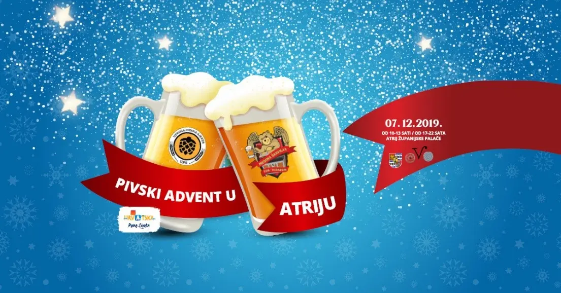 Drugu subotu Adventa, 7. prosinca, u sklopu Adventskih događanja u atriju Županijske palače, po prvi puta će se održati Pivski Advent. Manifestacija se priprema u suradnji sa Udrugom pivara Sjever i Medinom škrinjom, a u bogatoj ponudi craft piva koju pripremaju valja posebno istaknuti kuhano pivo, pivo od buče te Đumbeer pivo Križevačke pivovare.