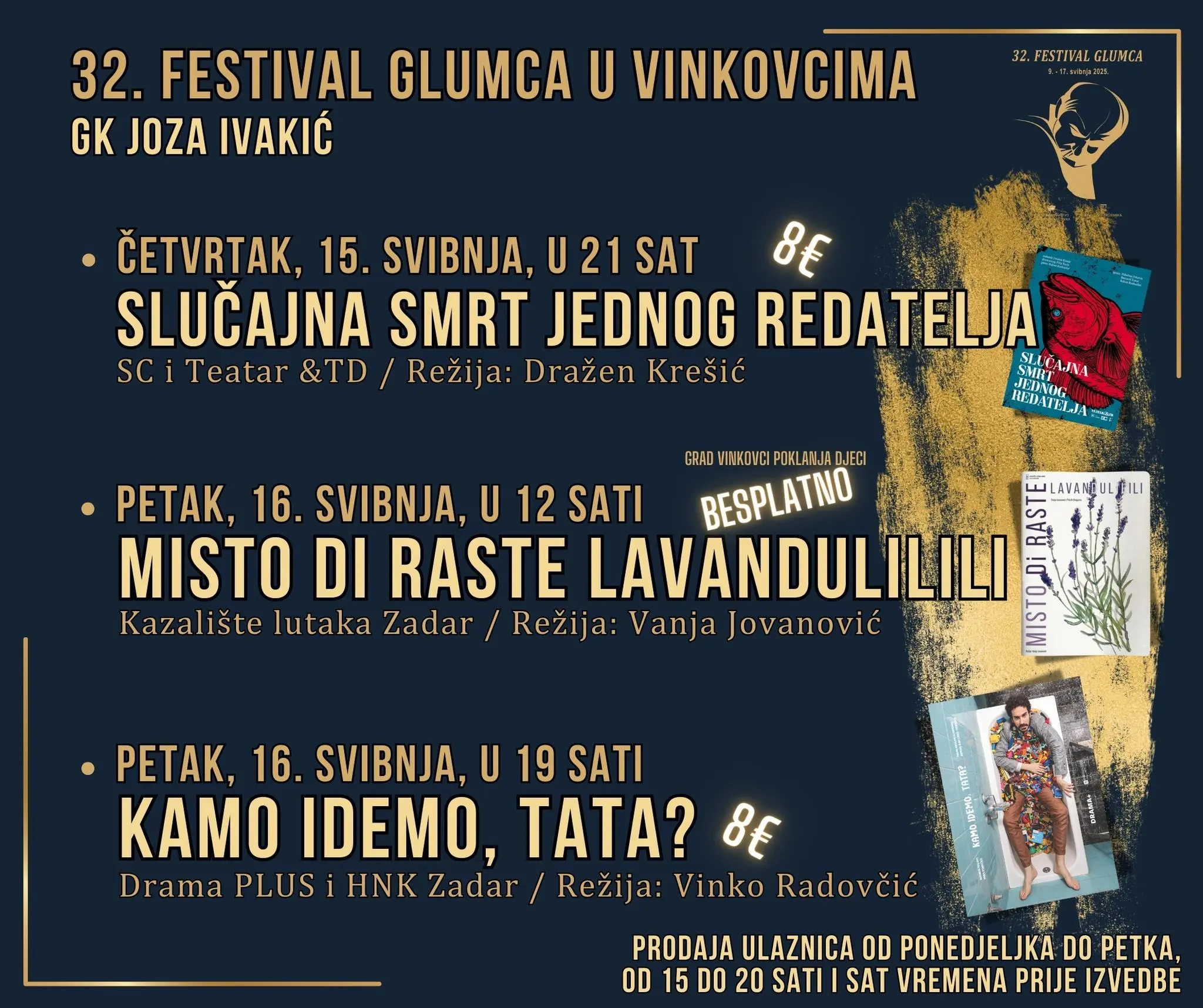 Jedno od najvažnijih kulturnih događanja u Hrvatskoj, 32. Festival glumca, održat će se od 9. do 17. svibnja u gradovima Vukovarsko-srijemske županije - Vukovaru, Vinkovcima, Županji, Otoku i Iloku